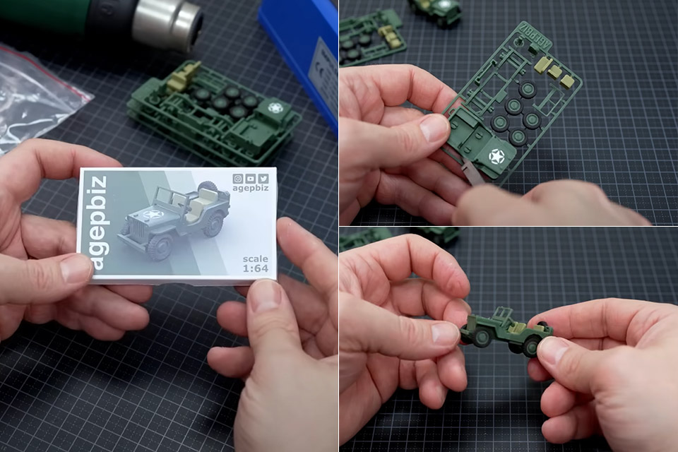 As for the 1:64 scale Jeep, its injection mold-like card was 3D-printed on a Bambu Lab X1 Carbon, while a Silhouette Portrait 2 electronic cutting tool was used to slice up the labels to give it a true model kit-inspired look. Other machines / parts used in this build include Fiberlogy Impact PLA filament, a Bosch UniversalHeat 600 heat gun and a PFS-200 Heat Sealer.