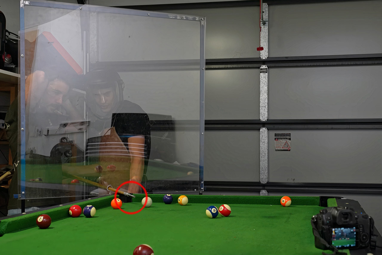 Apollonov eventually need to create a piston tip for a pool stick that is triggered by a blank round when it smashes into the pool ball. What happens next? An explosive game of billiards of course with one of his close friends. Fortunately, everyone wore the proper safety gear so there are no injuries to report.