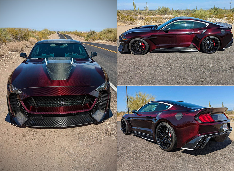 While not as flashy as Galpin’s 7-Eleven Model 711 Ford Mustang, Asira Design’s rebodied carbon fiber Ford Mustang is definitely more stealthy. The exterior boasts hand-crafted exposed carbon fiber panels that have been designed with performance in mind, including its integrated rear spoiler and splitter showcasing the exhaust pipes.