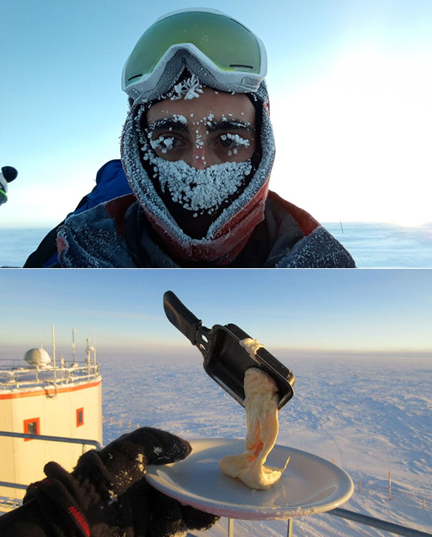 Let’s face it, even though Antarctica is a beautiful barren landscape, it can get quite boring there, especially since summer is just around the corner with the sun up nearly 24-hours a day. Astrobiologist Cyprien Verseux decided to have some fun by cooking up a meal and seeing just how quickly it would freeze in the -94°F temperatures, or at least bringing a few cooked items from the base.