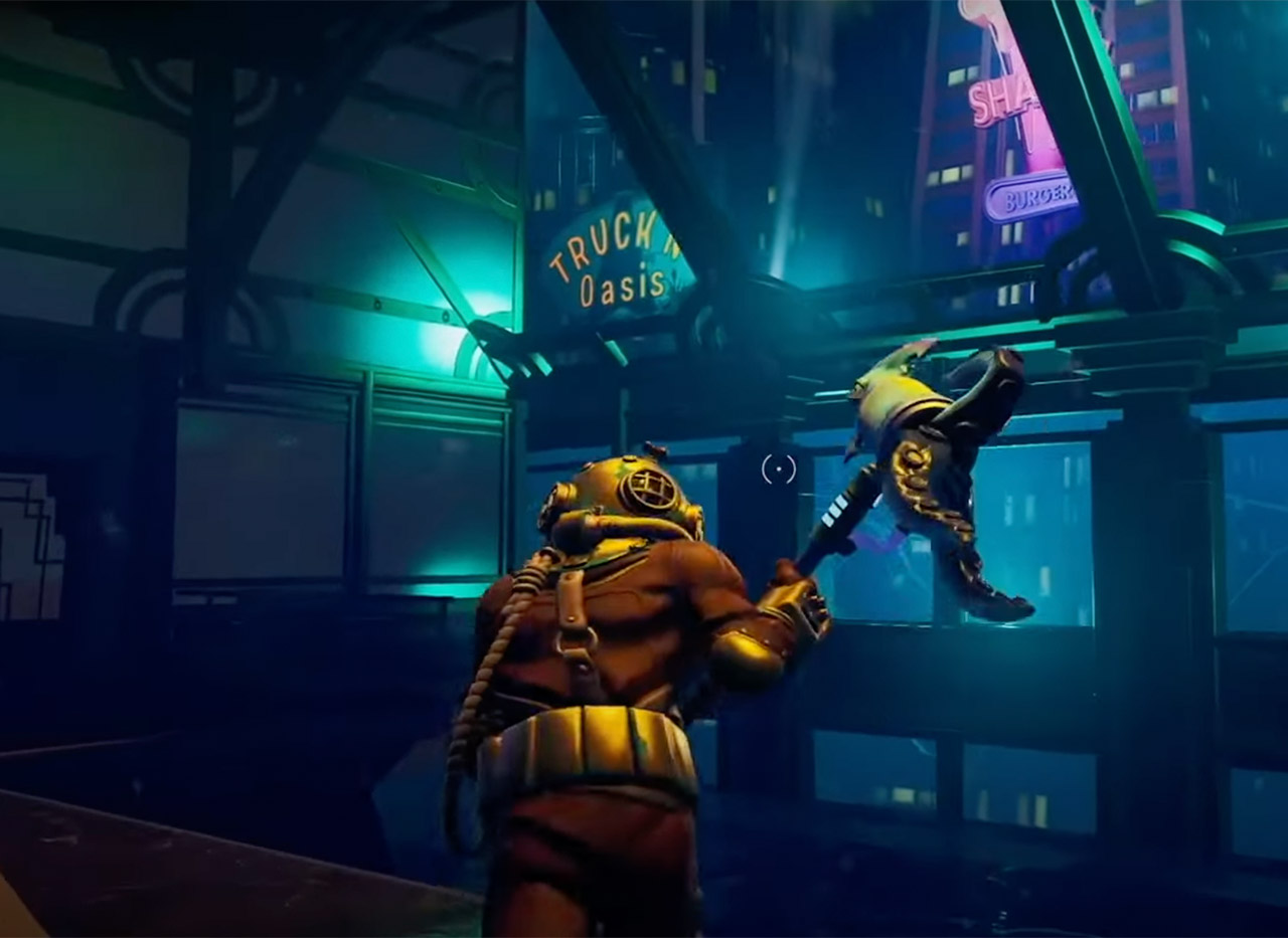 A BioShock fan wanted to pay tribute to Rapture, the underwater city that is the main setting for the first two games in this series. So, they recreated it in Fortnite, complete with a rain filter and a squid that replaces the standard pickaxe. Neon lighting was added to the exterior buildings to finish things off and give it the ambience of BioShock.