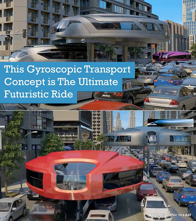 We have seen the future of public transportation, and it could include Dahir Insaat’s “Gyroscopic Transport,” which basically consists of giant disk-shaped vehicles that can elevate above traffic, while overlapping each other to avoid traffic. It has “huge potential to provide an efficient, economical, safe, environmentally friendly, comfortable, and maneuverable conveyance that is independent of the general traffic flows on arterial roads,” according to its designer.