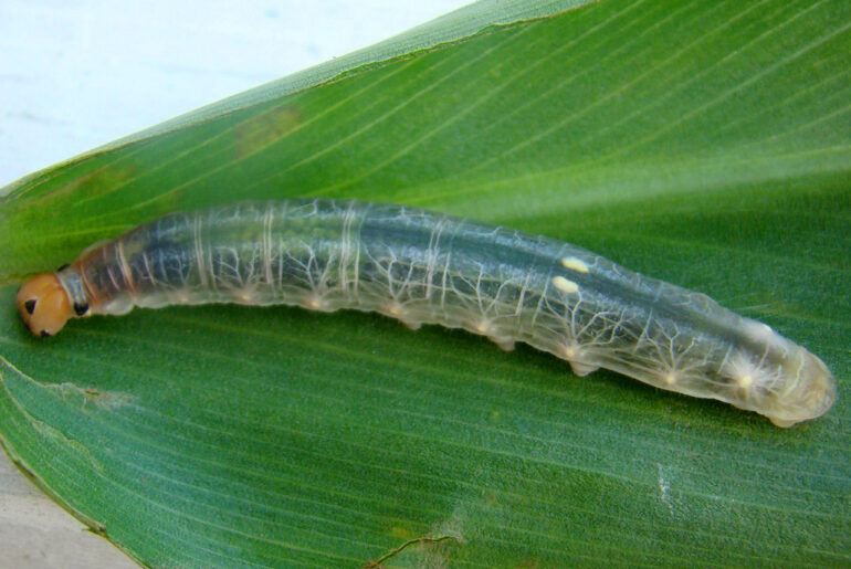 At first glance, the Brazilian Skipper caterpillar has a normal-looking head with orange and black spots. Its body starts off greenish gray and becomes darker green as it eats fresh undigested leaves, but upon closer inspection, you’ll realize that its translucent, which means its circulatory system is visible. Zoom in just a bit and it might confuse some into thinking that this is some science fiction movie prop or computer generated imagery.
