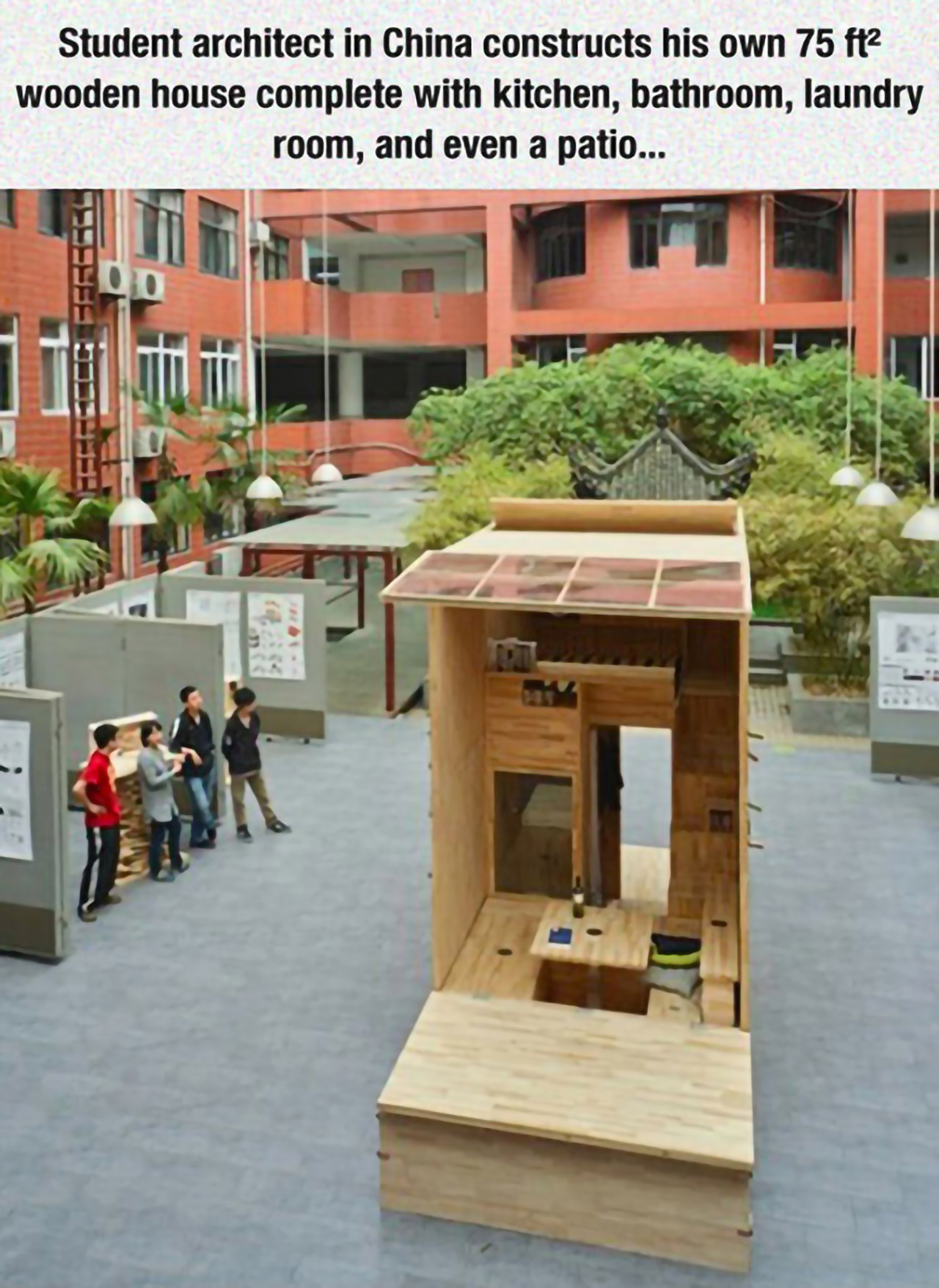 We imagine that upgraded this tiny cube home would be simple, as it currently doesn’t appear to be suited for outdoors use. However, adding some panels on the exterior should change that. Or, this student could possibly add some modular components that can be added and / or removed when needed, including furniture, entertainment options, a mobile office, game room, etc.