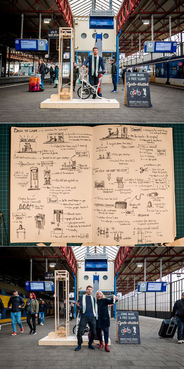 Let’s face it, sometimes trains get delayed (or you’re very punctual), and what better way to spend an extra 5-minutes or more than by getting some exercise as well as a free scarf while doing so? Meet the Cyclo Knitter by design student George Barratt-Jones.