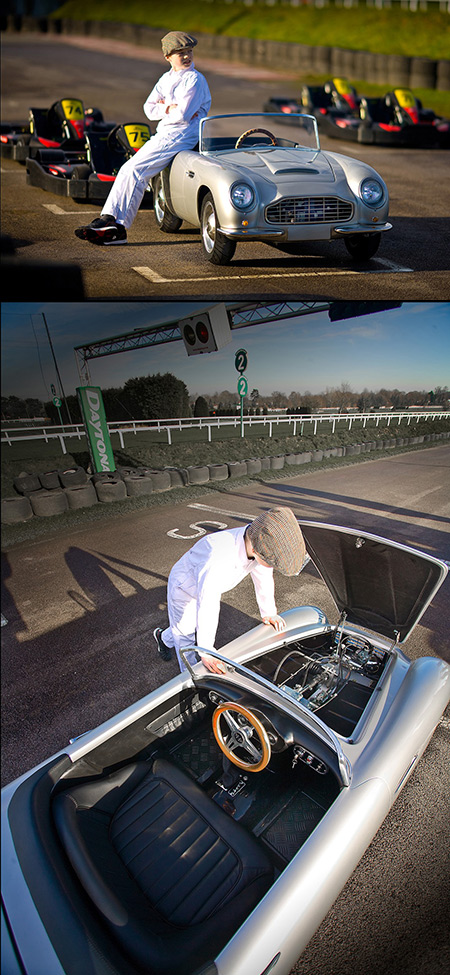 Nicolas Mee & Co, an Aston Martin Heritage Dealer from West London has unveiled the world’s smallest functional Aston Martin: the DB Junior. It’s inspired by the legendary Aston Martin DB models of the 1960s and boasts composite coachwork sitting on a sturdy steel box-section chassis, leather or vinyl seats, a wood-rimmed steering wheel and hydraulic disc brakes.
