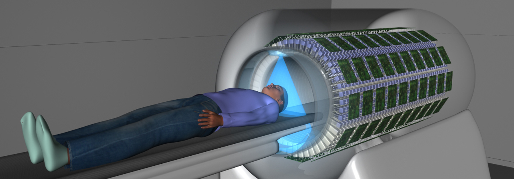 The EXPLORER Total Body PET scan, developed by UC Davis scientists Simon Cherry and Ramsey Badawi, is currently the world’s first full-body medical imaging scanner. It’s capable of capturing a 3D image scan of the entire human body in just one 20-30 second pass, thus eliminating the need for body specific machines, while also reducing the patient’s exposure to radiation from multiple tests. Read more for another video, additional pictures and information.