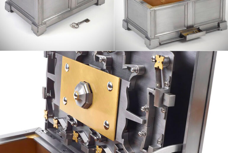 Coffer appears to be a normal chest at first, but this amazing project by metal-smith Seth Gould took 2 years to complete, and is actually a puzzle box made entirely from wrought iron, pure iron, steel and brass. What makes it even more amazing is that all the parts, screws and springs included, were handmade. The forging was done using a coal forge, hammer, anvil, and power hammer. Once the pieces are close to their finished shape, they were moved to the bench to refine the surface and then shaped with a file.