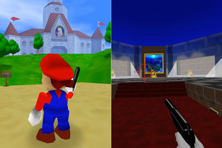 Programmer Graslu00 has created a custom GoldenEye 007 level with Super Mario 64 characters, and the Peach’s Castle mod works surprisingly well to say the least. We see everything from Koopas with machine guns to grenade-throwing Bob-ombs. Does this GoldenEye 007 with Mario characters mod look familiar?