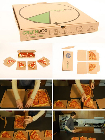 Unlike standard pizza boxes, the GreenBox comes complete with built-in plates and even a storage unit for leftovers that fits in just about any refrigerator. Best of all, this isn’t yet another concept, but rather a real item that can be purchased by restaurants all over the world.
