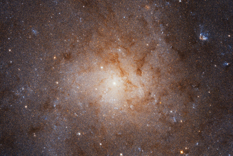 “Astronomers think that Triangulum has been an introvert, avoiding disruptive interactions with other galaxies, instead spending the eons tending its well-ordered spiral and turning out new generations of stars. Further research may determine if Triangulum is actually a newer member of the Local Group of galaxies, and perhaps its quiet days will soon be over. This mosaic was created from images taken by Hubble’s Advanced Camera for Surveys between February 2017 and February 2018,” adds Hubble Site.