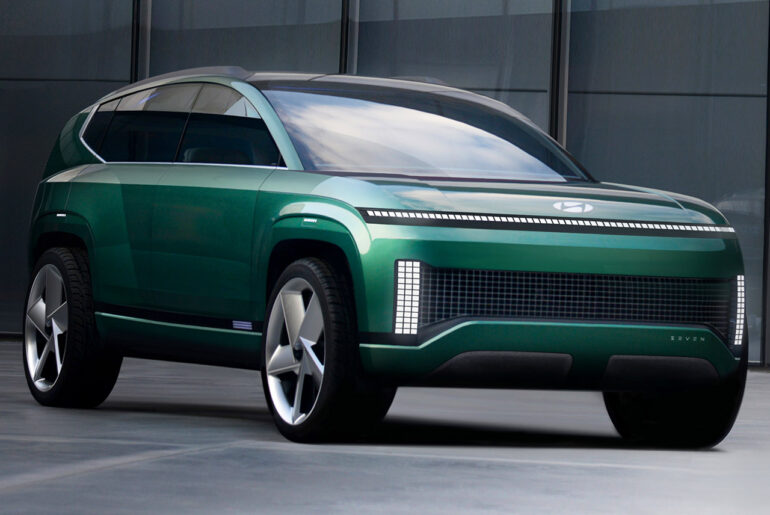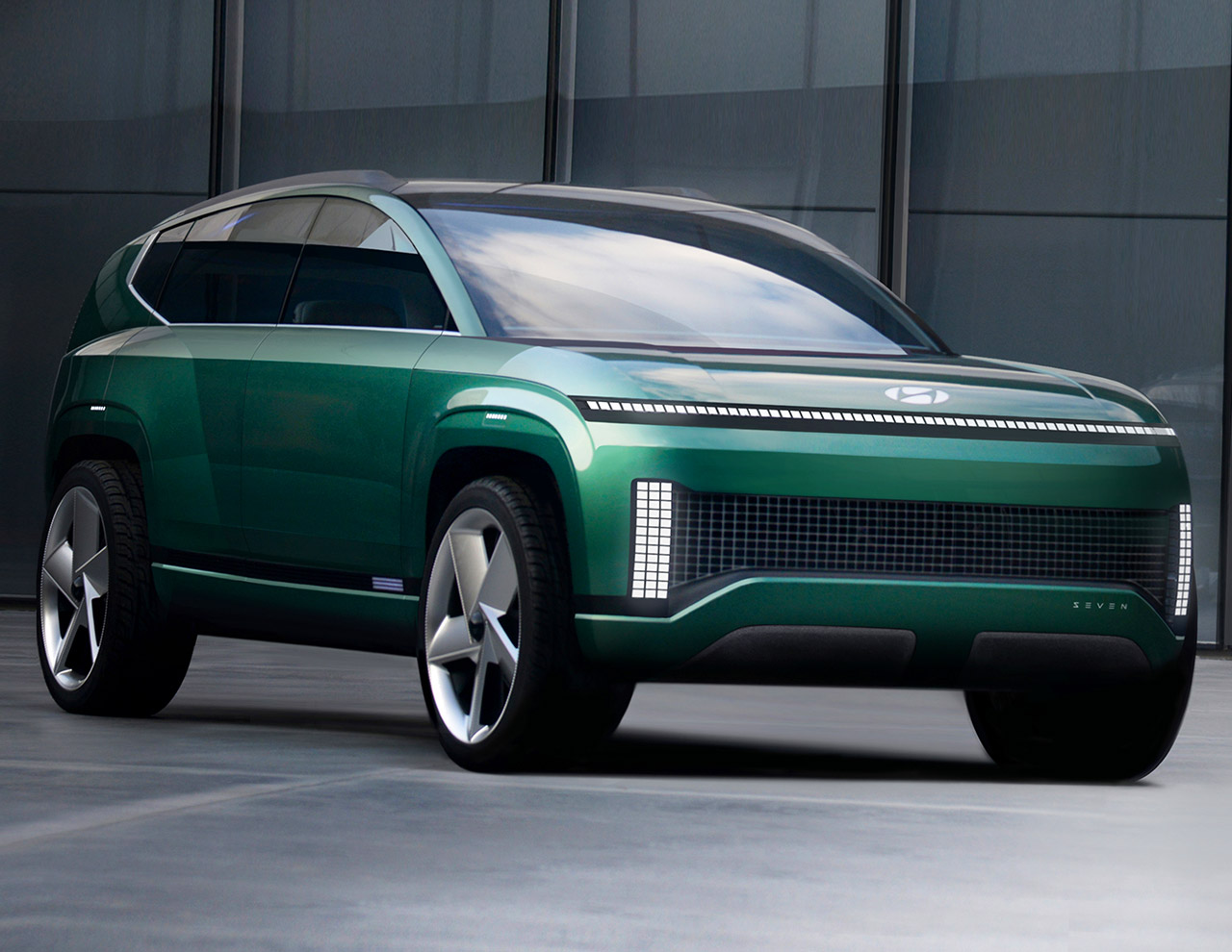 Set to make its debut at the LA Auto Show this weekend, the Hyunda IONIQ 7 (SEVEN) electric SUV is unlike any other the company has worked on in the past. It’s built on the company’s Electric-Global Modular Platform (E-GMP) and sports wheels with integrated Active Air Flaps, which deploy or retract depending on brake-cooling or low-drag requirements. In the darkness of night, Parametric Pixel lights play a Welcome Light Sequence on start-up.