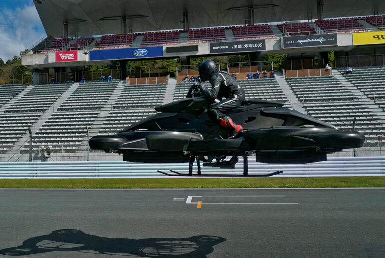 Japan-based startup A.L.I. Technologies has debuted the XTurismo Limited Edition, a $680,000 USD hoverbike with a hybrid drivetrain. It’s powered by a standard engine, paired with four battery-powered motors, that when combined is good for up to 40-minutes of continuous flight as well as a top speed of 62.1 mph. The design features a motorcycle-style body that sits atop a set of propellers. When grounded, it is propped up on landing skids.