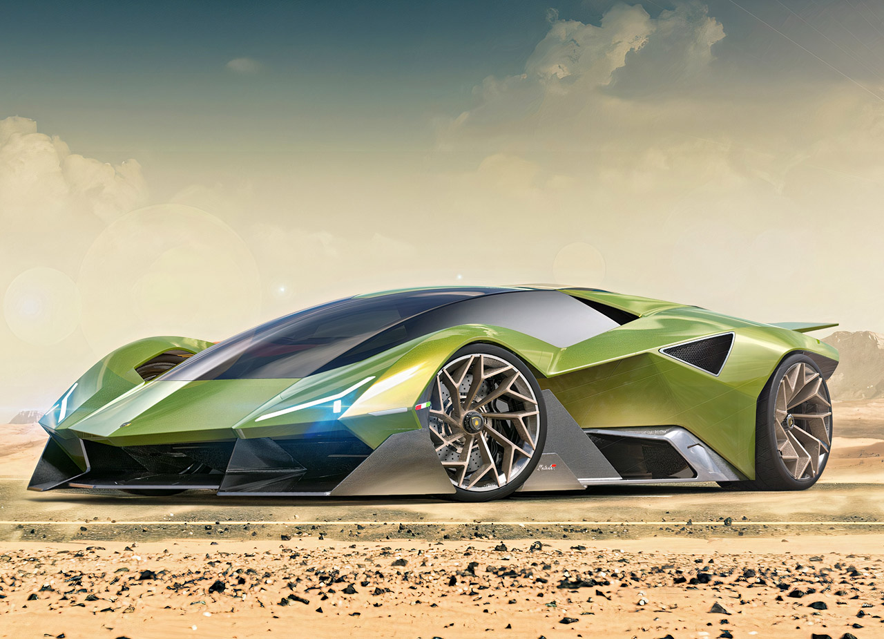 Power comes from a twin-turbocharged 3.0L V12, pared with two electric motors, that generate a combined output of 1,400 horsepower. The petrol engine sends power to the rear wheels, while the electric motors keep the front ones running. All of these renderings started out as sketches before being visualized in Photoshop and then eventually 3D modeling software.