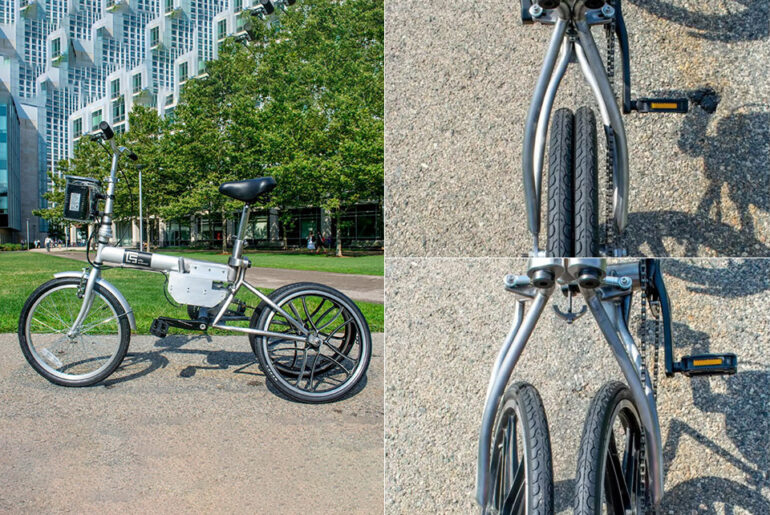 The MIT Media Lab City Science group realizes the issue with autonomous bicycles is keeping it balanced, so tricycle mode was integrated when the rider dismounts. It transitions using two linear actuators that separate and rejoin the wheels as needed. Two electric motors propel the bike when in autonomous mode: a hub motor up front and a second motor for steering.