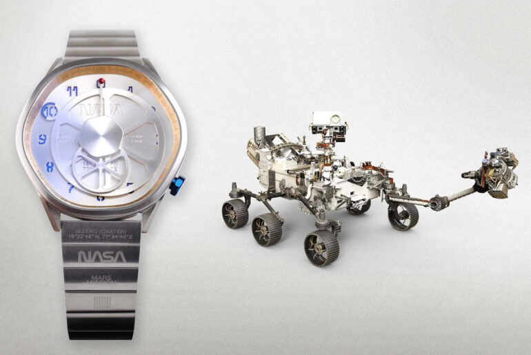 Limited to 200-units worldwide, the NASA x Anicorn Mars Mission watch celebrates the historic launch. Faaturing Miyota 9015 automatic movement with 24 jewels, housed in a 316L stainless steel case, water resistance up to 50 meters and a stainless steel bracelet with butterfly clasp. An alternate fabric strap is also included embroidered with the NASA logo.