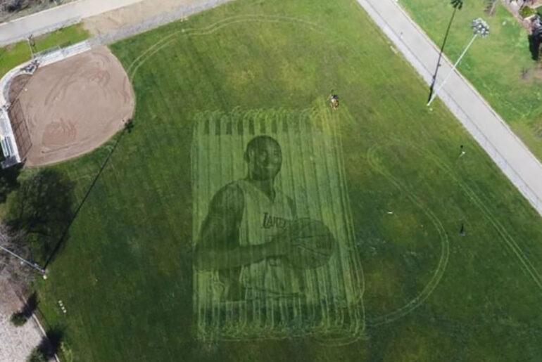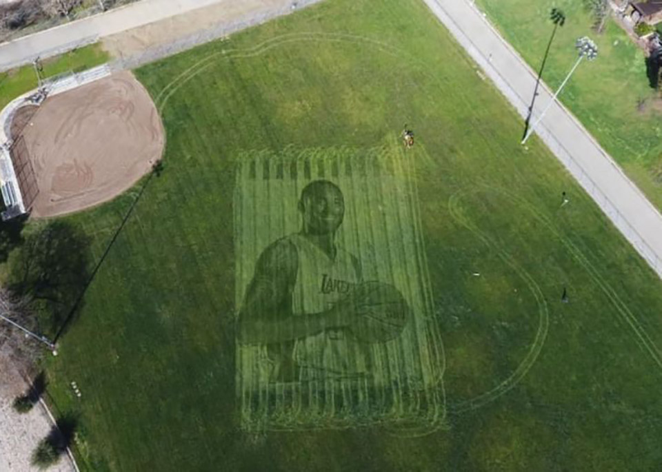 New Ground Technology specializes in crafting custom high-definition designs on playing fields, and their latest project pays tribute to the late Kobe Bryant. Kelli Pearson’s stunning 115-foot portrait of the former Lakers great can be found on a Bay Area softball field. This was made possible using the company’s patented Turfprinter technology. The face was drawn from two different photos, the neck another shot and the body was from a different image.