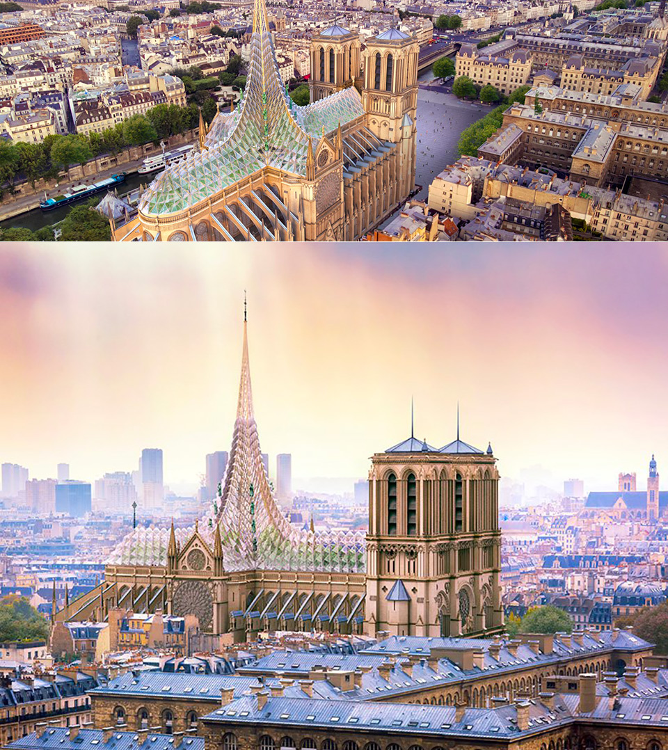 Paris-based architect Vincent Callebaut has come up with an interesting proposal for the Notre Dame cathedral restoration project that hopes to establish a closer symbiotic relationship between humans and nature. If this project is approved, it will unite the cathedral’s nave, roof, and new spire, all in glass with an oak frame. Visitors will be able to walk around this area and take in the natural light, as well as the greenery. “Transparency, sharing, and openness to our society’s development: such are the ideas conveyed by this new, diaphanous forest of Notre Dame, outlining the new face of the church in the 21st century,” said Callebaut.
