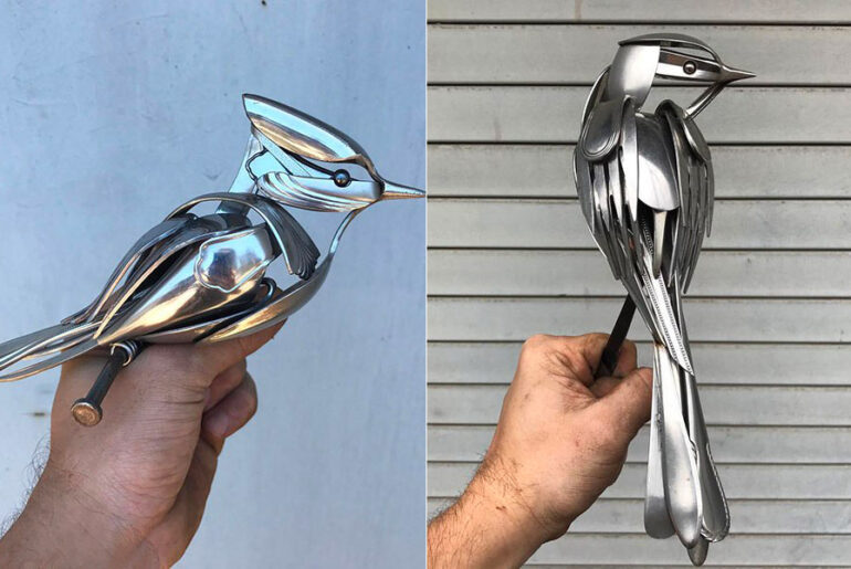 Artist Matt Wilson specializes in transforming old cutlery, whether they be spoons, forks, or knives, into amazing animal sculptures, like birds. When he’s not making these works of art, he dabbles in driftwood and scrap metal, finding ways to turn those into masterpieces as well, with some pieces making their way onto Etsy.