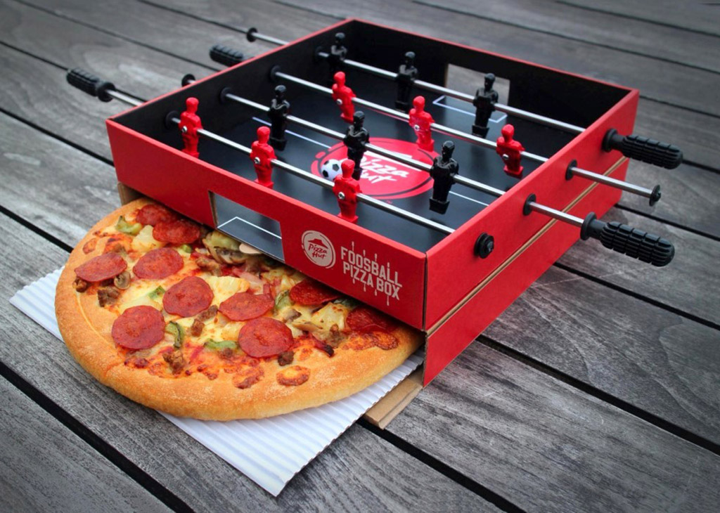 Pizza Hut partnered with Ogilvy to launch a limited-edition pizza box that doubles as a functional foosball table. It was created to celebrate the start of the Europa League on October 22nd, and as you might have already guessed, most people will not be able to get their hands on these, since just five of them are available. To get your chance at winning one, you’ll have to download the Pizza Hut app, join the 12th Player Club, and then leave a comment on the company’s Facebook page.