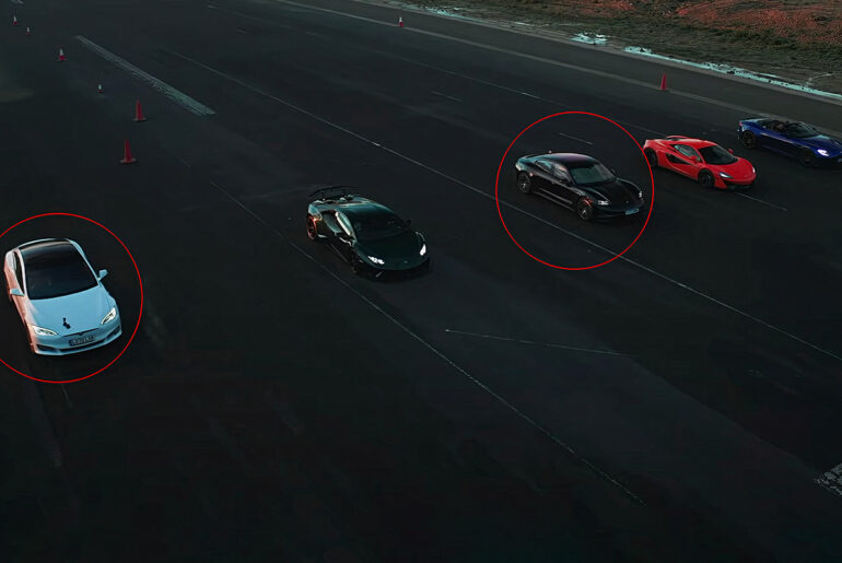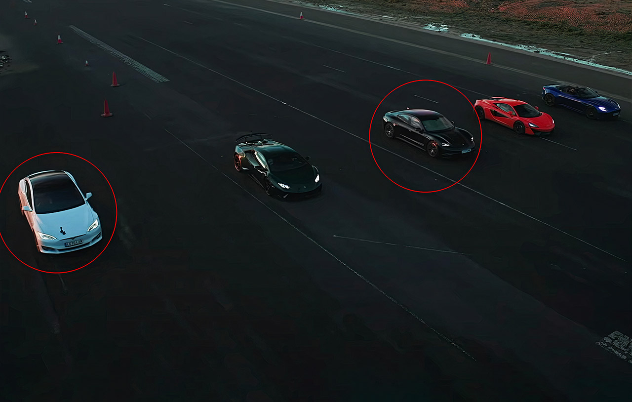 Can the all-electric Porsche Taycan 4S and Tesla Model S Performance stand up to modern supercars? Most certainly, even if it’s a Lamborghini Huracan Performante, McLaren 540C, and an Aston Martin DBS Superleggera Volante. Each one of their petrol-powered competitors average 600 hp and six cylinders, with the Lamborghini Huracan Performante’s 640 hp V10 engine being the most powerful of them all. However, the Tesla Model S Performance boasts 762 hp and the Porsche Taycan 4S clocks in at 429 hp.
