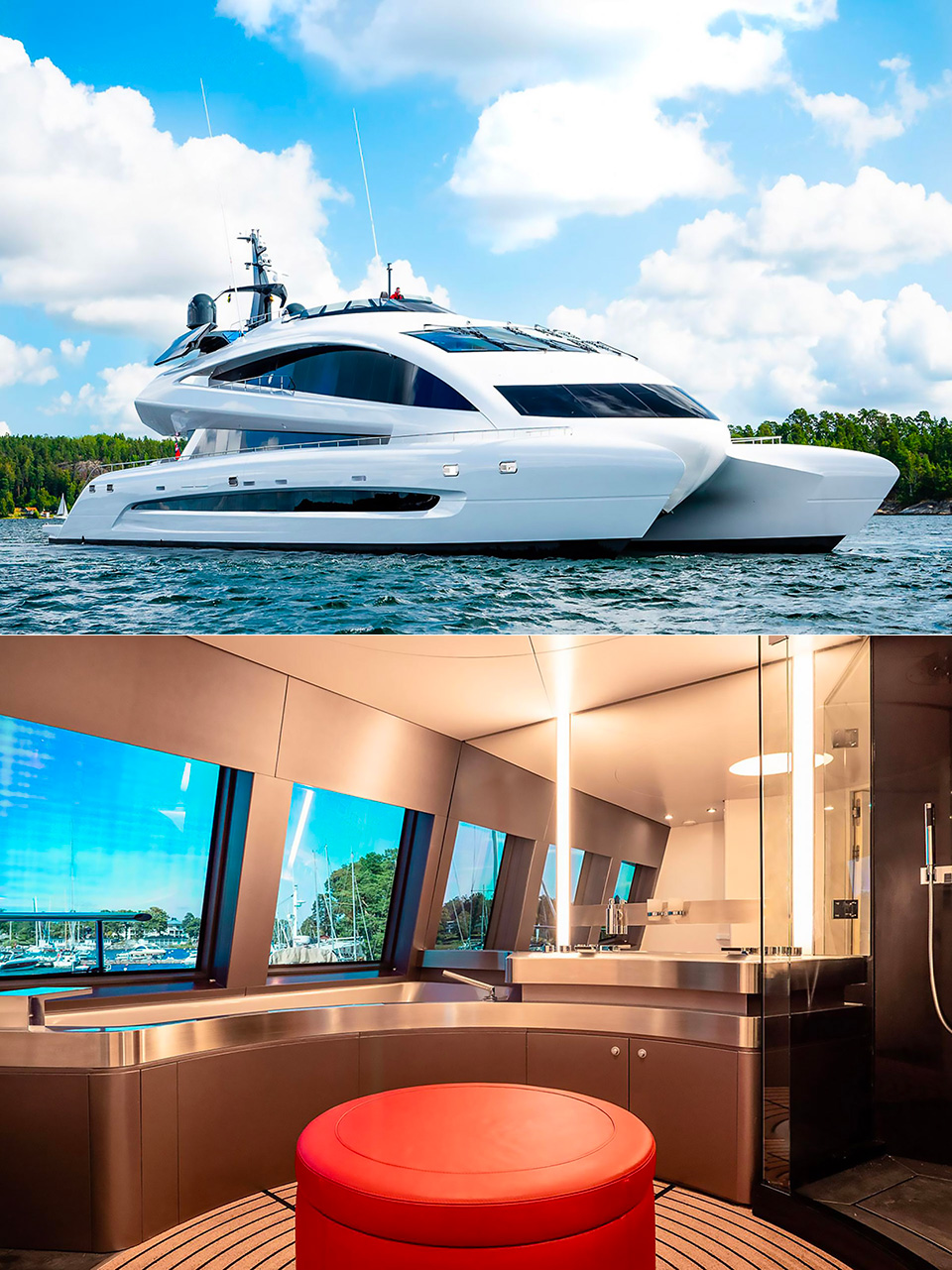 Sure, the interior and exterior decks are bathed in luxury, but we can’t forget about the most important part, propulsion. It’s powered by twin 4,600hp MTU diesel engines and two Rolls-Royce KaMeWa waterjets, which enable it to hit a top speed of 35 knots, while offering a cruising distance 2,000 nautical miles at 30 knots. There’s no word yet on pricing, but you know what they say…