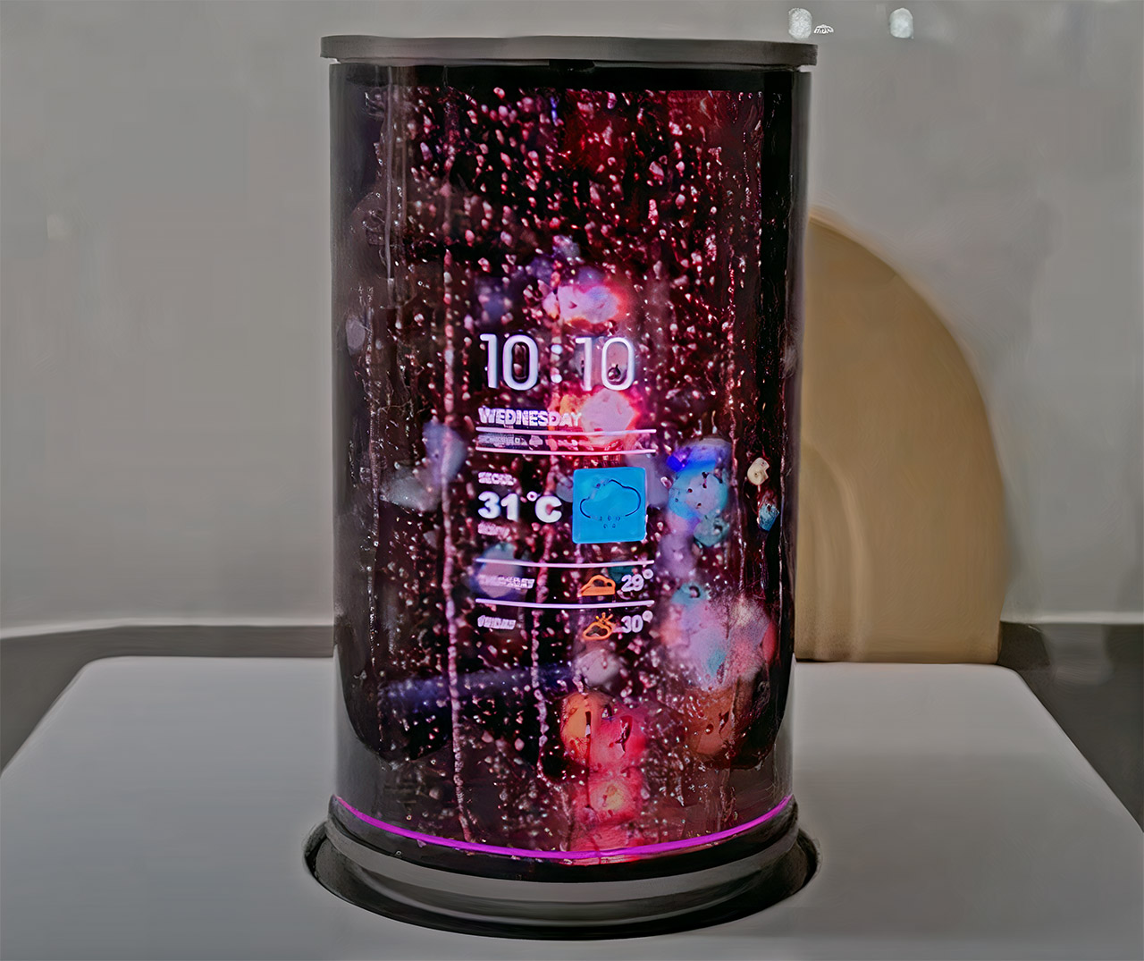 At the 21st International Meeting on Information Display (IMID 2021), Samsung Display unveiled a new AI Smart Speaker unlike anything you’ve probably seen before. This cylinder-shaped device looks normal at first, but its 12.4-inch flexible OLED display can be unfolded for a variety of uses, including as a television set of sorts. How do you change modes? Simply open up the companion smartphone app, press a button, and the transformation happens in seconds.