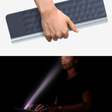 Samsung introduces the Movingstyle, a 27-inch touchscreen display that can be pushed around the floor on hidden wheels, lifted off its stand, and carried around like a huge briefcase.