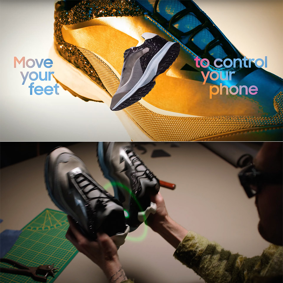 Performing a certain action with the sneakers causes your Samsung smartphone to respond, such as making phone calls or playing music by dancing. This is achieved through built-in motion sensors in the sole of the sneakers that continuously track the position in relation to each other. Currently, there are five unique movements that trigger five shortcuts. Interested? Join Samsung Members by July 9th for a chance to win one of six pairs.