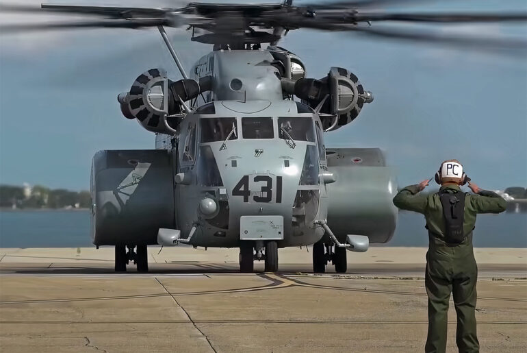 Ever wonder what the largest helicopter that the U.S. Navy uses looks like? If so, then look no further than the Sikorsky MH-53E Sea Dragon, which currently has two missions: taking part in the Airborne Mine Counter Measure (AMCM) mission as well as the Navy Vertical Onboard Delivery (VOD) mission. It stands 28-feet tall, measures 99-feet in length, and has a max gross weight of 69,750-pounds with a top speed of 172 mph.