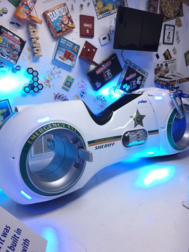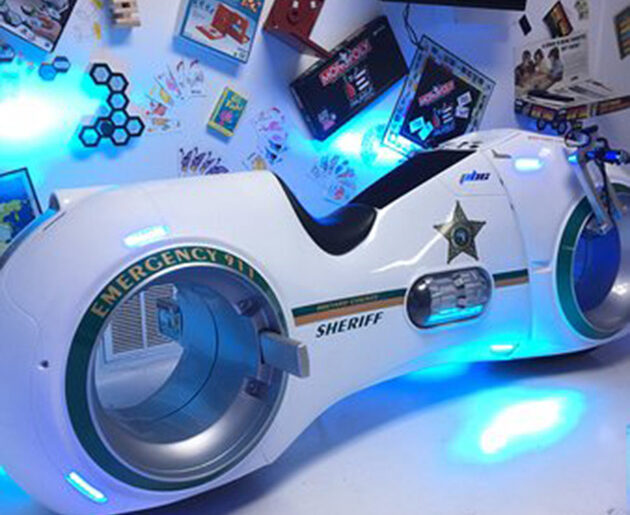 Sure, this TRON Light Cycle police vehicle by Parker Brothers Concepts may not be the most practical on normal roads, but it’ll definitely turn some heads. It’s equipped with a TL1000R motor that powers the chain driven friction drive system, enabling it to hit a top speed of 120 miles. However, the hardest part of the build was trying to go from the CGI of the movie to a real-life situation, according to its creators.